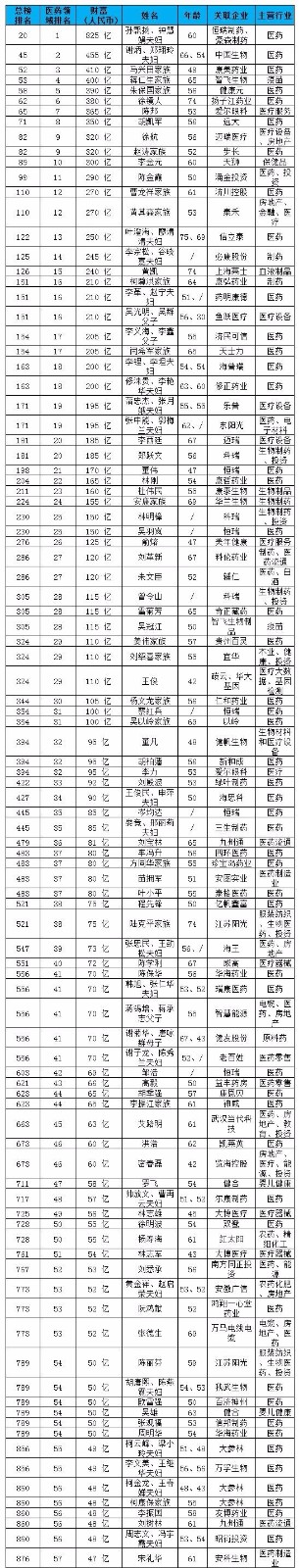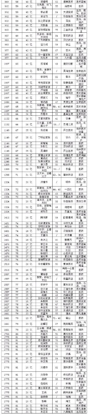 以下为2018胡润百富榜(医药领域)的名单,可以为自己喜欢的企业笔芯!