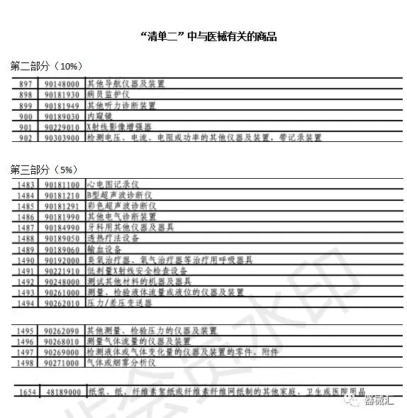 从财政部发布的公告来看,公告中提到的700亿美元商品清单时发现,涉及医疗器械的产品不仅有大型医用设备仪器,同时也包括耗材和试剂。